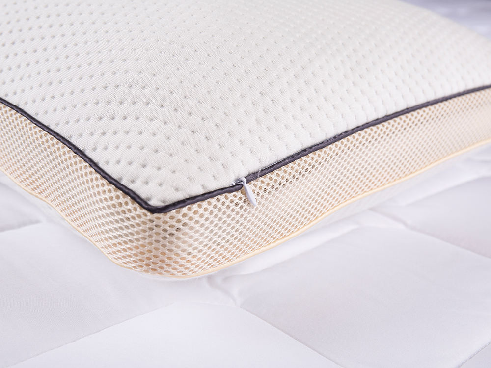 নরম এবং শ্বাস প্রশ্বাসের ফ্যাব্রিক সহ সুন্দর এবং আরামদায়ক বালিশ। ফিলিং উভয়ই নরম এবং সহায়ক। শ্বাস প্রশ্বাসের স্যান্ডউইচ জাল ডিজাইন বালিশের অভ্যন্তরে এবং বাইরে উচ্চতা বাড়িয়ে তোলে, কাঙ্ক্ষিত পূর্ণতা অর্জনের জন্য একটি সাধারণ বালিশের চেয়ে বেশি ফিলিংয়ের প্রয়োজন হয়, পাশের স্লিপারদের সমর্থন হিসাবে ব্যবহার করা ভাল করে তোলে